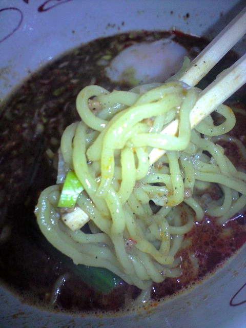 麺は比較的太いストレートタイプでこの特殊な感じのスープによくあっている。
