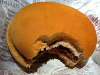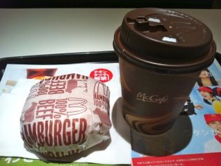 苦し紛れに一番安いスタンダードなハンバーガーと珈琲(M)を注文。