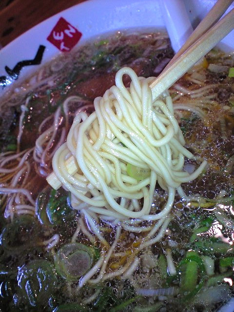 平打ち麺か縮れ麺が王道だとしたらここのはそれと異なっており細めのストレート麺だ。