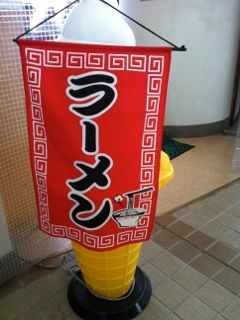 店名の書いてある看板のヨコにラーメンの旗が。