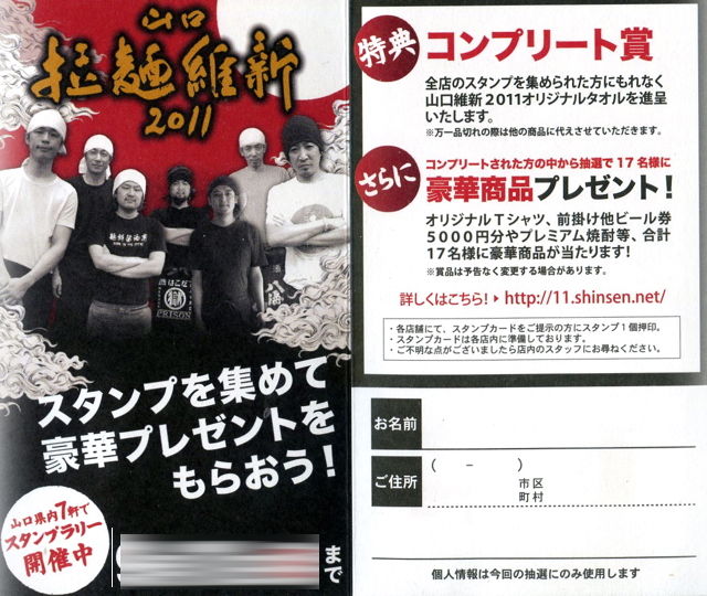 ①全員の方に『山口拉麺維新2012』のロゴが入ったオリジナルタオルをプレゼント(各店なくなり次第終了)