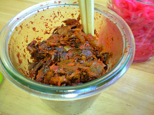 4分の3くらい食べたところで例の辛し高菜投入!!