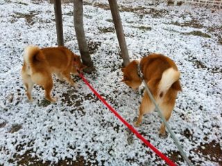 強い冬型の朝、五日市にも雪が少しだけ積もった。