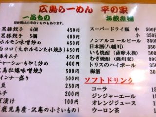前回告知した居酒屋メニューが遂に本格的に開始になった広島らーめん平の家。