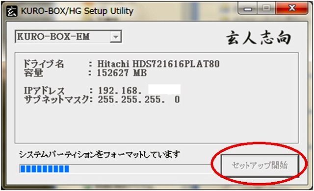 LANで繋がっている玄箱を認識するとこんな感じでフォーマットしてくれる。