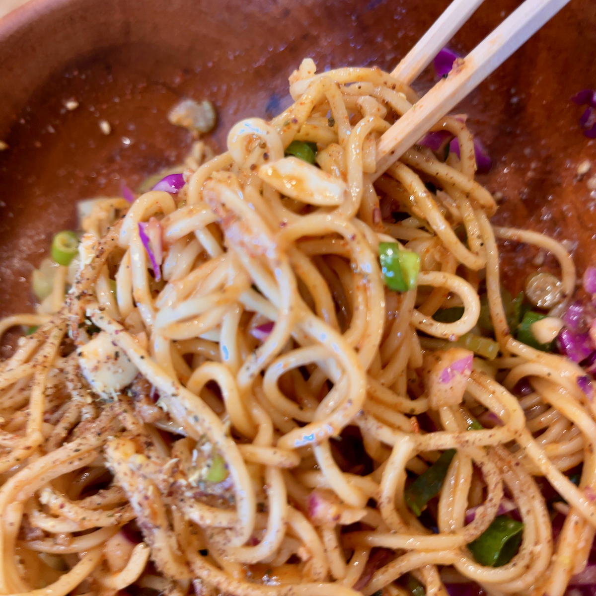 麺はコシがあってしっかり旨いし薬膳系の調味料と相まって確かに独特な味わいの個性的汁なし担担麺となっている。