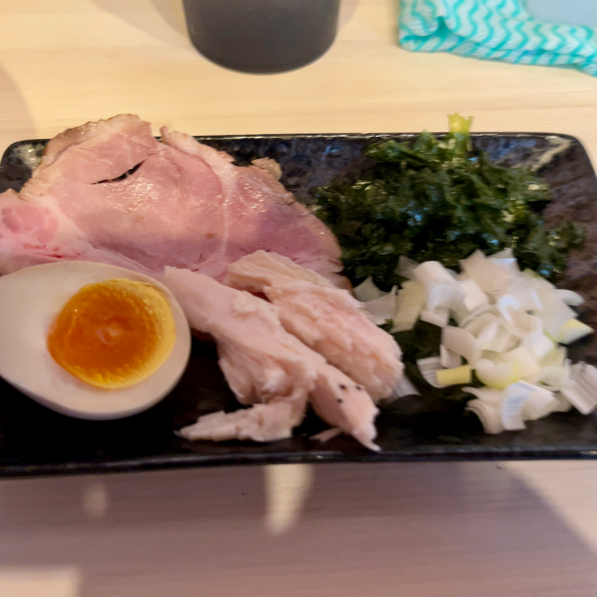 海苔とネギ、そして2種類のチャーシューと煮玉子はあくまでもこの貝のだしと麺の脇役に徹しているかの如く控えめにその存在を主張してくる。