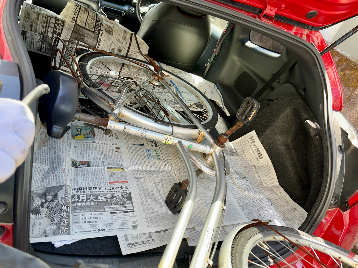 途中でわかったのだが前輪からハンドルまでにけっこうな高さがあってこれがGRヤリスのトランクの幅に入らないことが判明。