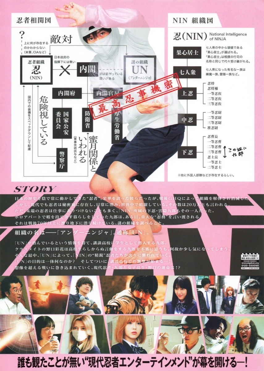 忍者組織「NIN」に所属する末端忍者・雲隠九郎(山崎賢人)は、戦後70年以上にわたって地下に潜り続けてきたある組織の調査を命じられる。