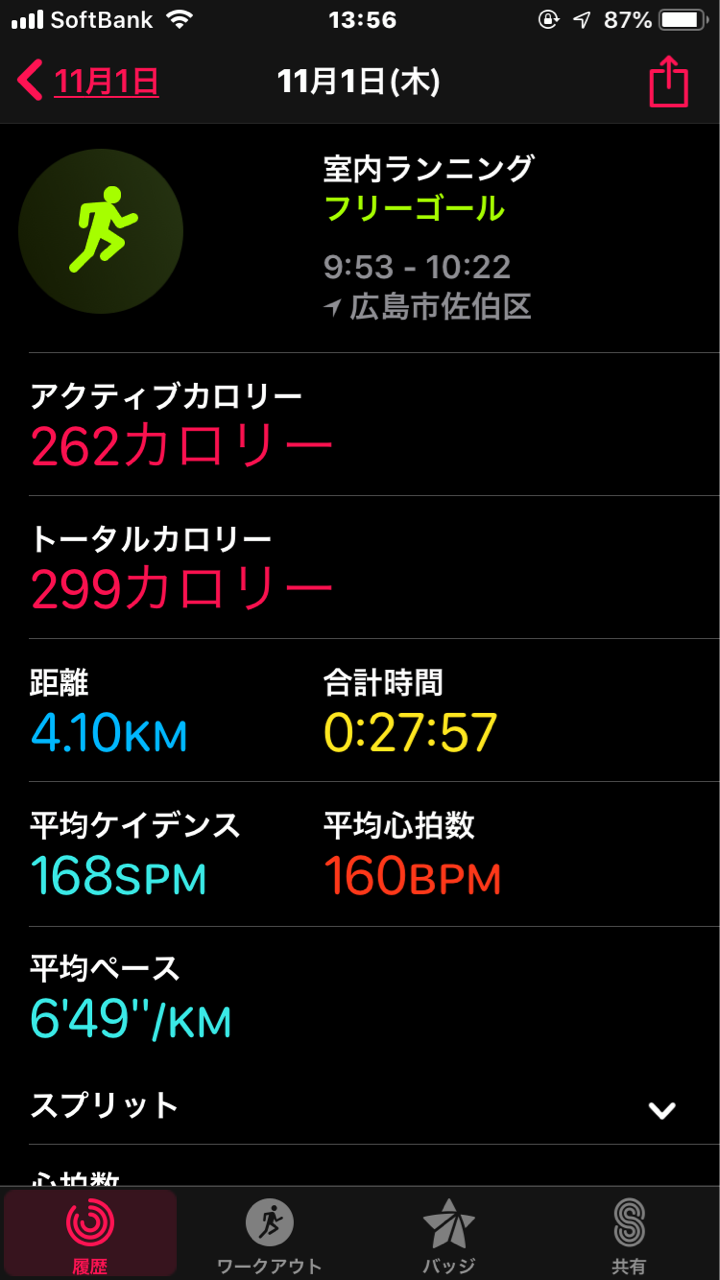 室外のランニングではナイキのアプリを使っているので室内ランニングには純正のワークアウトアプリを使ってみた。