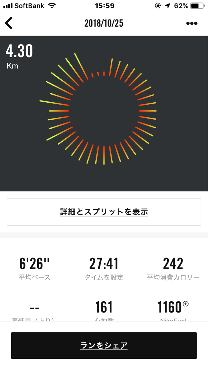 これもアクティビティアプリに記録されているがトレッドミルに表示されている距離とのズレがほとんどないのはどういう仕掛けがあるのかわからんが最近のこの手のガジェットは劇的に進化したもんだと感心する。