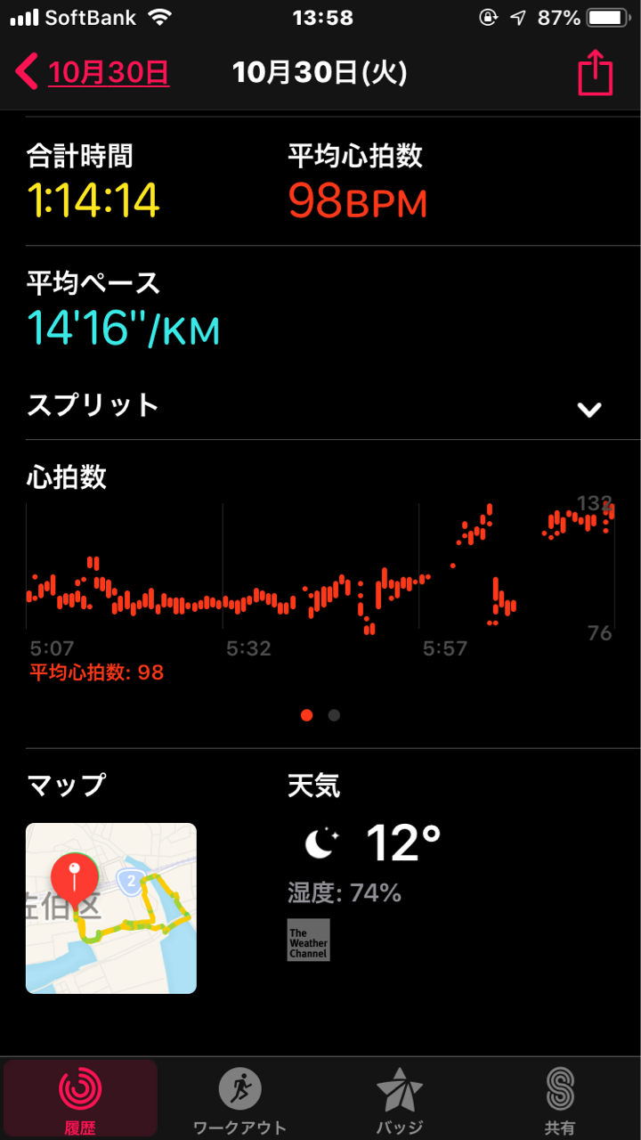 心拍数やGPSでの足跡までさすがにバッチリ記録されとるがね。