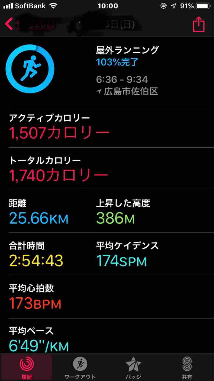 アップルウォッチのワークアウトアプリの設定には省電力モードがあって今回はオフにしていたが、これをオンにすればワークアウト中はモバイル通信と内蔵心拍センサーがオフになるようで今度試してみようと思う。